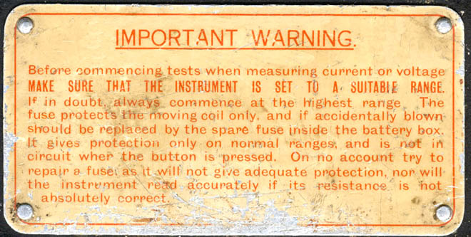 Помимо перечисления Британских патентов № 200977 и 404015, примечательно упоминание о том, что на момент производства прибора была запатентована не только его конструкция "в основных странах мира", но и само слово AVOMETER ("авометр") являлось зарегистрированной торговой маркой фирмы-изготовителя данного прибора. В сочетании с отсутствием номера модели вышесказанное с большой вероятностью позволяет предположить, что описанный измерительный прибор является первым в мире представителем многофункциональных многопредельных измерителей электрических величин - авометров, получивших в дальшейшем широкое распространение.